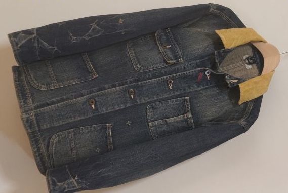 > H399 即決 ETERNAL エターナル 襟コーデュロイ デニム カバーオール リアル ヴィンテージ 加工 38 備中倉敷工房