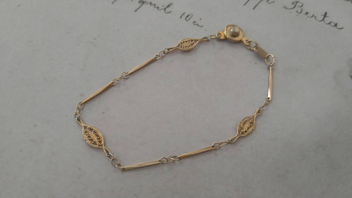 - ゴールドカラー×透かしリーフモチーフ チェーンブレスレット 留め具USA PAT
