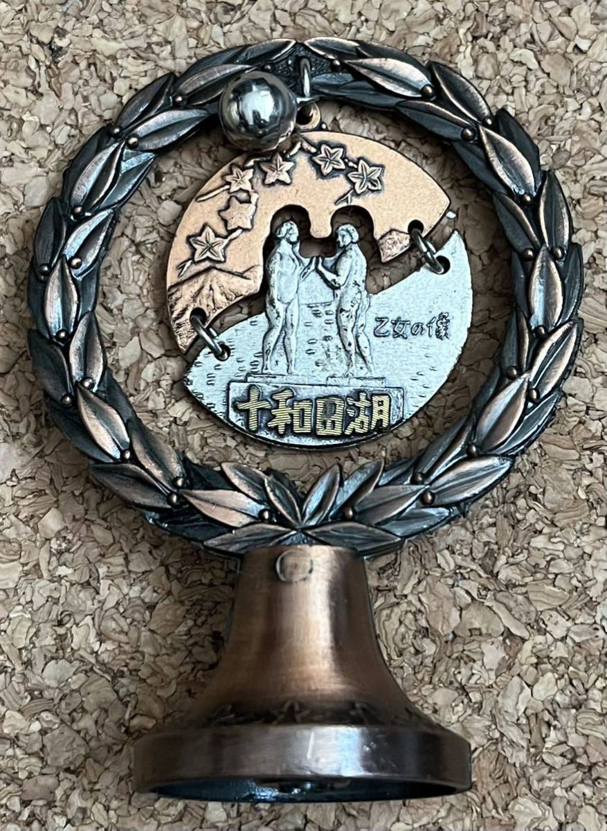 - ◇十和田湖 乙女の像 国立公園 青森県 十和田市 観光 卓上 エンブレム オブジェ 中古 昭和 レトロ 金属製 置物 飾り ビンテージ 鈴