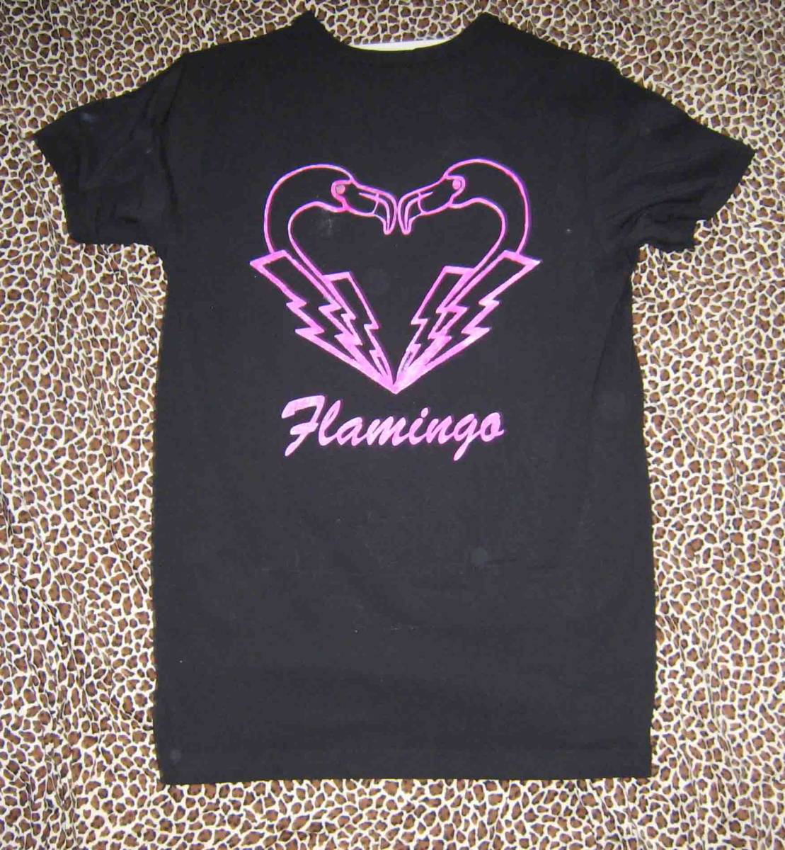 > ハート型のフラミンゴ Tシャツ バックプリント Vネック ■ M・L・2L 3L の4サイズあり 黒地にピンク