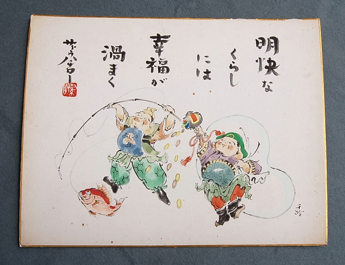 - 色紙:大サイズ 詩:サトウハチロー 『恵比寿大黒』 絵:水野千齢 複製印刷