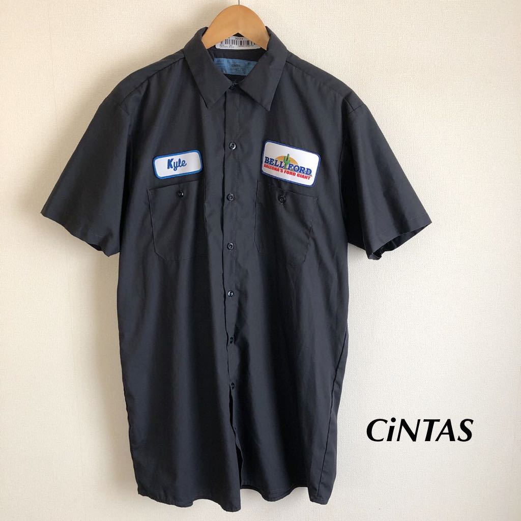 > CiNTAS /ComfortFLEX /メンズ L 半袖 ワークシャツ トップス ポリコットン 二つポケット 刺繍 ワッペン BELLFORD 企業 アメカジ USA古着 a
