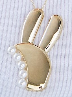 > 2022 存在感 CUNE ACCESSORIES『パールうさぎネックレス』CUNEウサギ 真鍮+樹脂パール 黄金色 約タテ4.5×ヨコ2.5cm 紙箱付き※未使用品