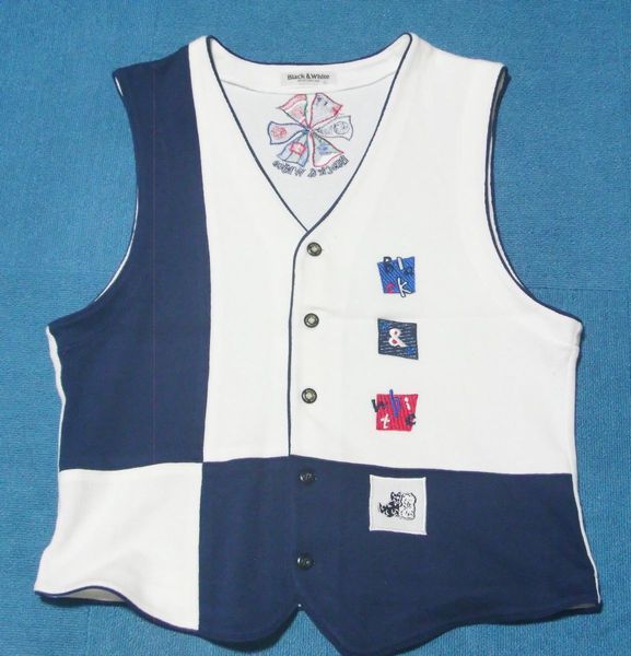 - 中古 汚れ有り★ブラック&ホワイト Black&White LL 綿100% ベスト カーディガン
