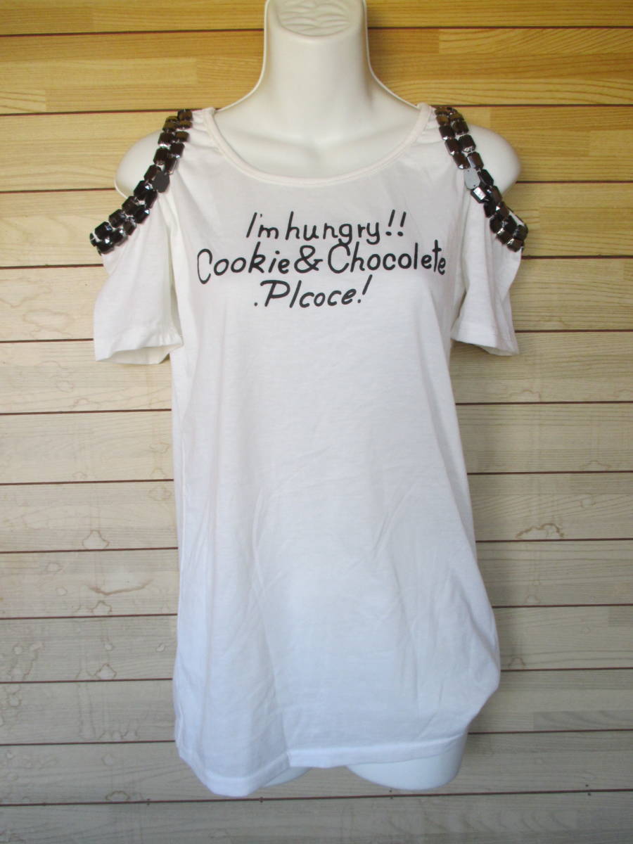 - 即決!●肩だしのビジューが素敵●白半袖のプルオーバー●ダンスレッスン着にも