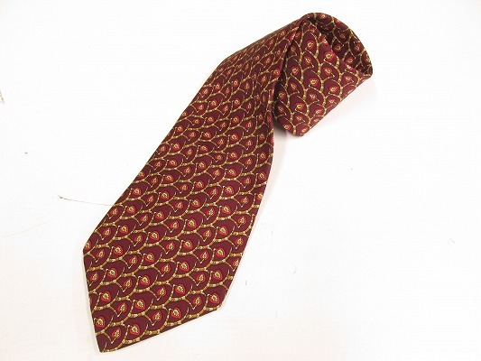 - k5880:イタリア製!サルヴァトーレ フェラガモSalvatore Ferragamoシルク絹100% ネクタイ 落葉/木/秋/えんじ/総柄 メンズ紳士:135