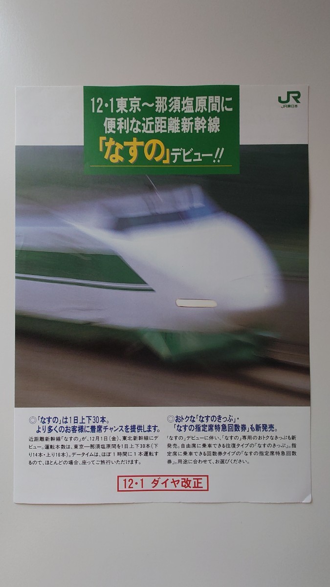 - ●JR東日本●東京ー那須塩原 近距離新幹線なすのデビュー●パンフレット
