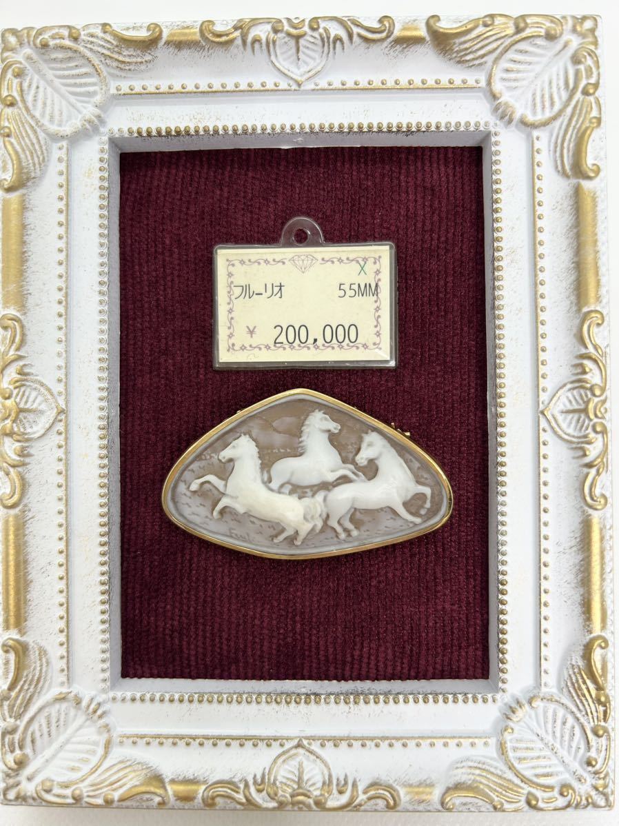 - 【新品】イタリアカメオ彫刻家フルーリオ作シェルカメオ*K18ゴールドブローチ兼ペンダントトップ/馬