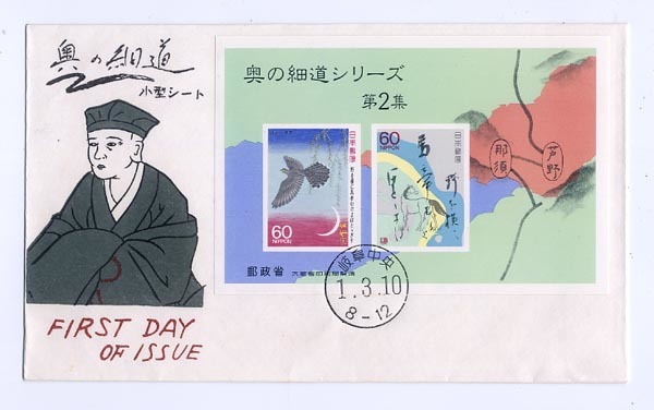 - B4★初日カバー丸型印付:1989 小型シート 奥の細道 第2集(ほととぎす)キレイ★(16.01.11)
