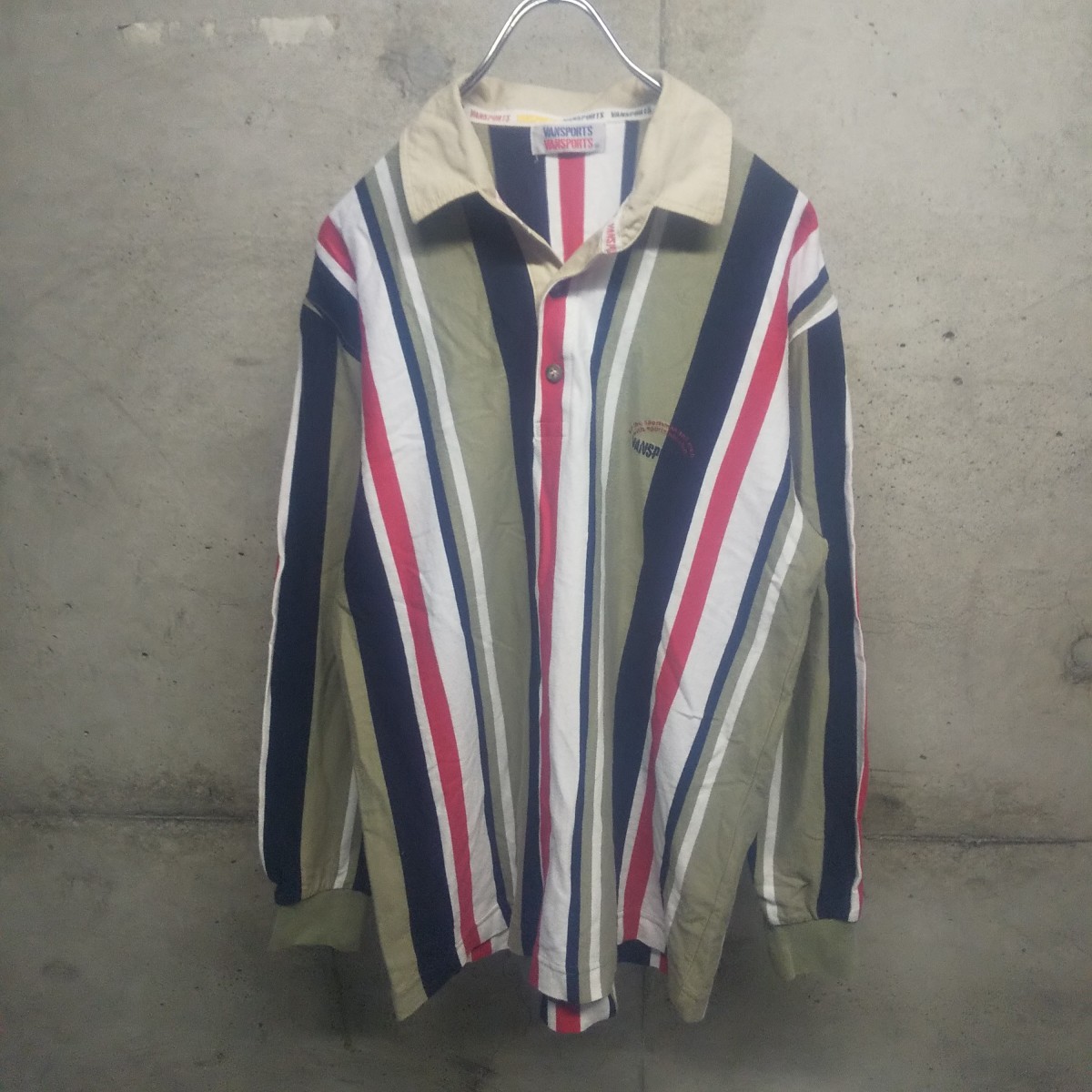 - 90s VAN SPORTS 長袖 ポロシャツ M ストライプ プルオーバー レトロ 刺繍 バン used 古着