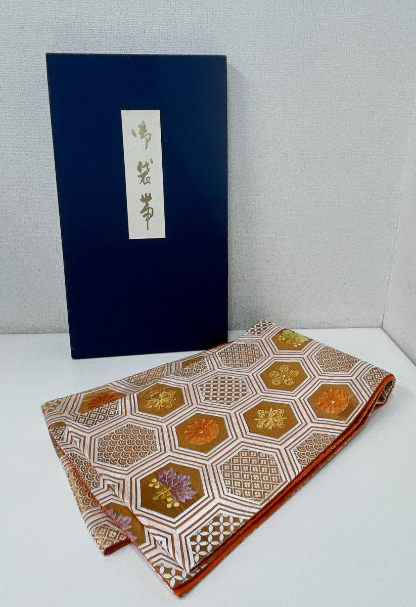 > お値下げ★【和装 袋帯】 女性和服/六通柄/着物/ 金色/縁起物/花柄/リメイクなどにも/T54-430