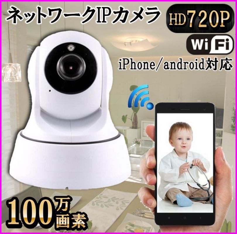> 高画質HD 100万画素 IPカメラ スマホで簡単 wi-fi接続 遠隔操作 赤ちゃん 高齢者 介護 ペット 見守りカメラ 新品 ♪ 防犯カメラ 監視カメラ
