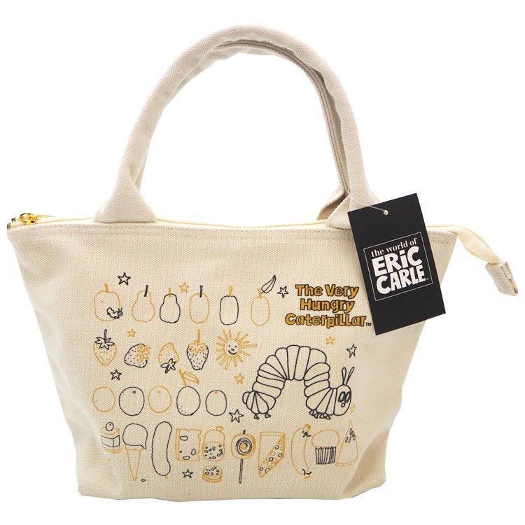 - 【新品!!】 はらぺこあおむし トートバッグ フルーツ ランチ バッグ 帆布 ファスナー トート ホワイト 白 エリックカール