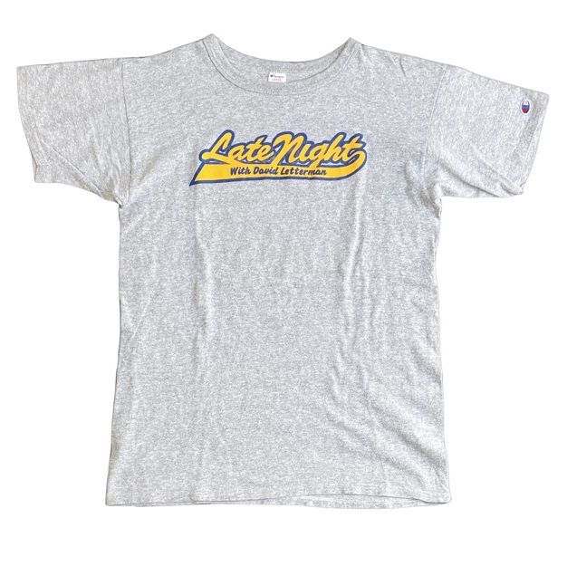 - 80’s 米国製 MADE IN USA チャンピオン Champion Tシャツ レイト・ナイト・ウィズ・デイヴィッド・レターマン 88/12 グレー L [ta-0736]