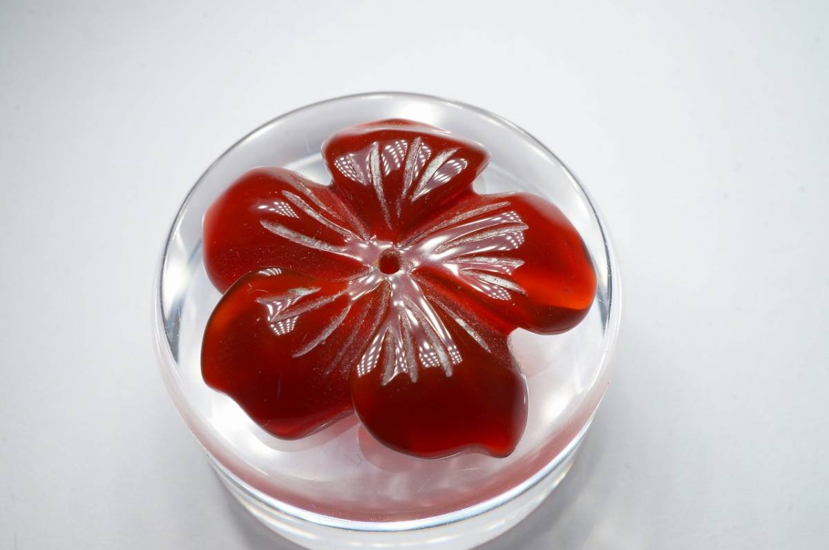 - 【限定即決価格!高級宝飾品用高品質ルース】希少!30年前の未使用在庫!早い者勝ち!天然瑪瑙(メノウ)彫刻「花」21.3ct