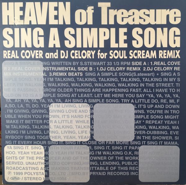 - ◆Heaven of Treasure/SING A SIMPLE SONG【1999/JPN盤/12inch】