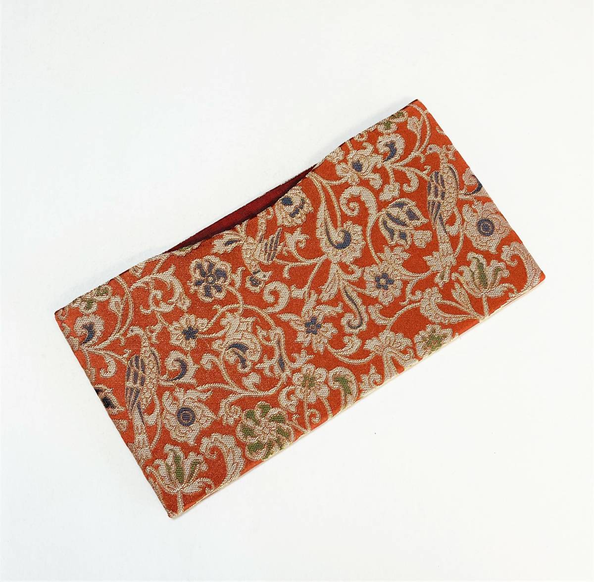 - 花とら●リサイクル札入れ 一口札入れ 織 宝相華唐草 美品 茶 金 230410