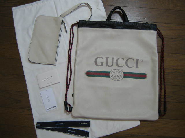 - ■GUCCI グッチ ドローストリング 2wayバックパック ホワイトレザー■