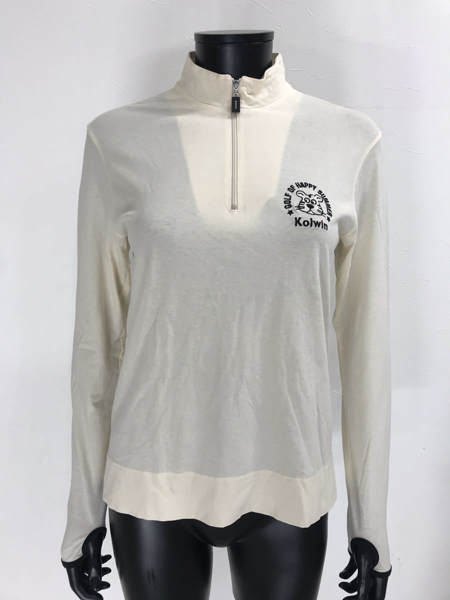 > 【USED】Kolwin コルウィン 綿 ハーフジップ ハイネック 長袖 シャツ サムホール 指穴カットソー アイボリー レディース M ゴルフウェア