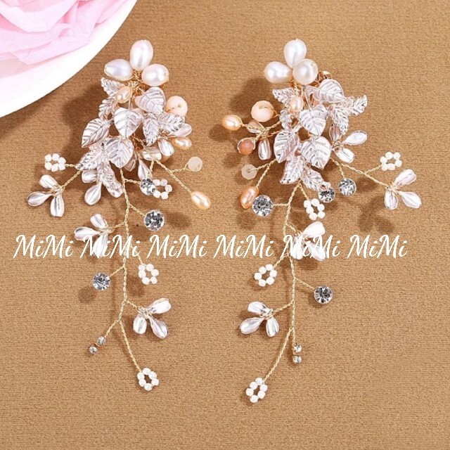 - イヤリング / ピアス ブライダルアクセサリー パール ブライダル ゴールド ウェディング 結婚式 長め ロング ウェエディング ローズ お花
