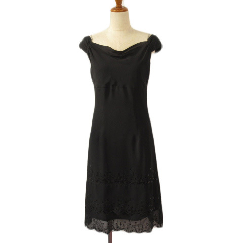 > 22オクトーブル 22 OCTOBRE ワンピース ティアード スパンコール 刺繍 ラインストーン 38 黒 ブラック レディース