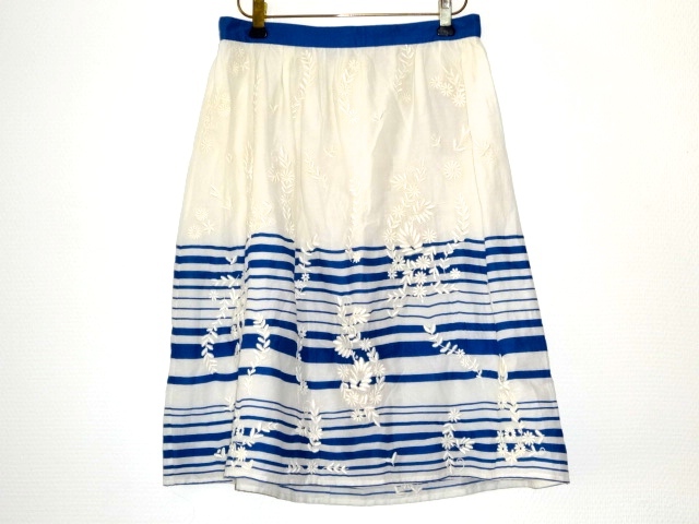 - ● ヴァネッサブリューノ スカート 白 ブルー 花 刺繍 新品 34 M athe vanessa bruno ストライプ コットン 爽やか フレアースカート