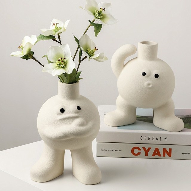 - 韓国雑貨 変な顔のかわいい花瓶 おしゃれ お洒落 フラワーベース セラミックス 水差し インテリア 小物 花器 雑貨 観葉植物 未使用 新品