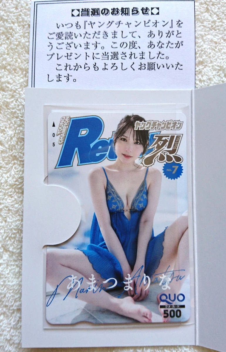 - 【抽プレ】★あまつまりな ☆ QUO / クオカード ♪ ヤングチャンピオン烈 ♪ 懸賞 当選