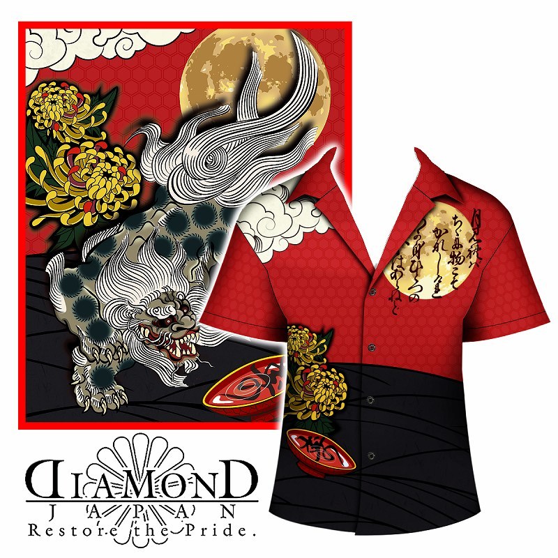 - アロハシャツ 和柄 唐獅子に月見酒 花札 盆 菊 ヤクザ ヤンキー オラオラ 半袖 柄シャツ 服 DJ-196 派手 夏物 祭 花火 メンズ ファッション