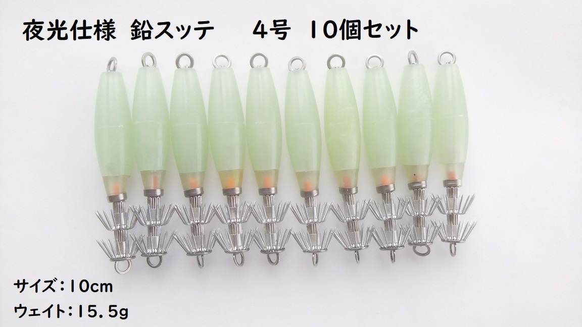 > 鉛スッテ 4号 10個セット 後方重心 10cm 15.5g 夜光 蓄光 イカメタル 透明 アカイカ ケンサキイカ スルメイカ ヤリイカ