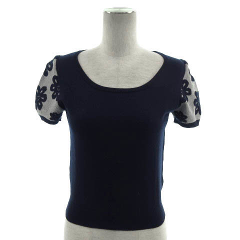 > クイーンズコート QUEENS COURT ニット セーター 半袖 花柄 ネイビー 紺 ホワイト 白 2 レディース