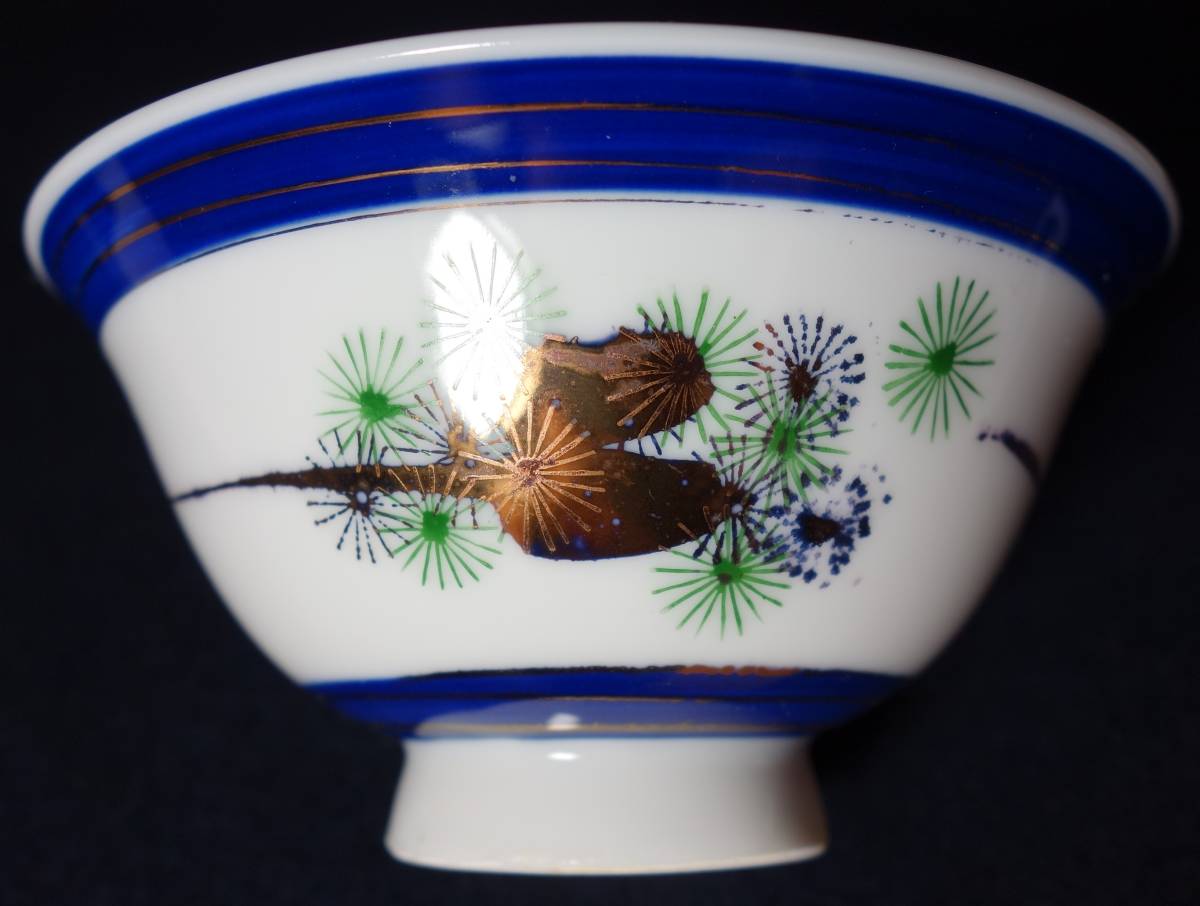 - 有田焼 ハートマーク 金襴唐松海青図 飯茶碗 陶磁器研究