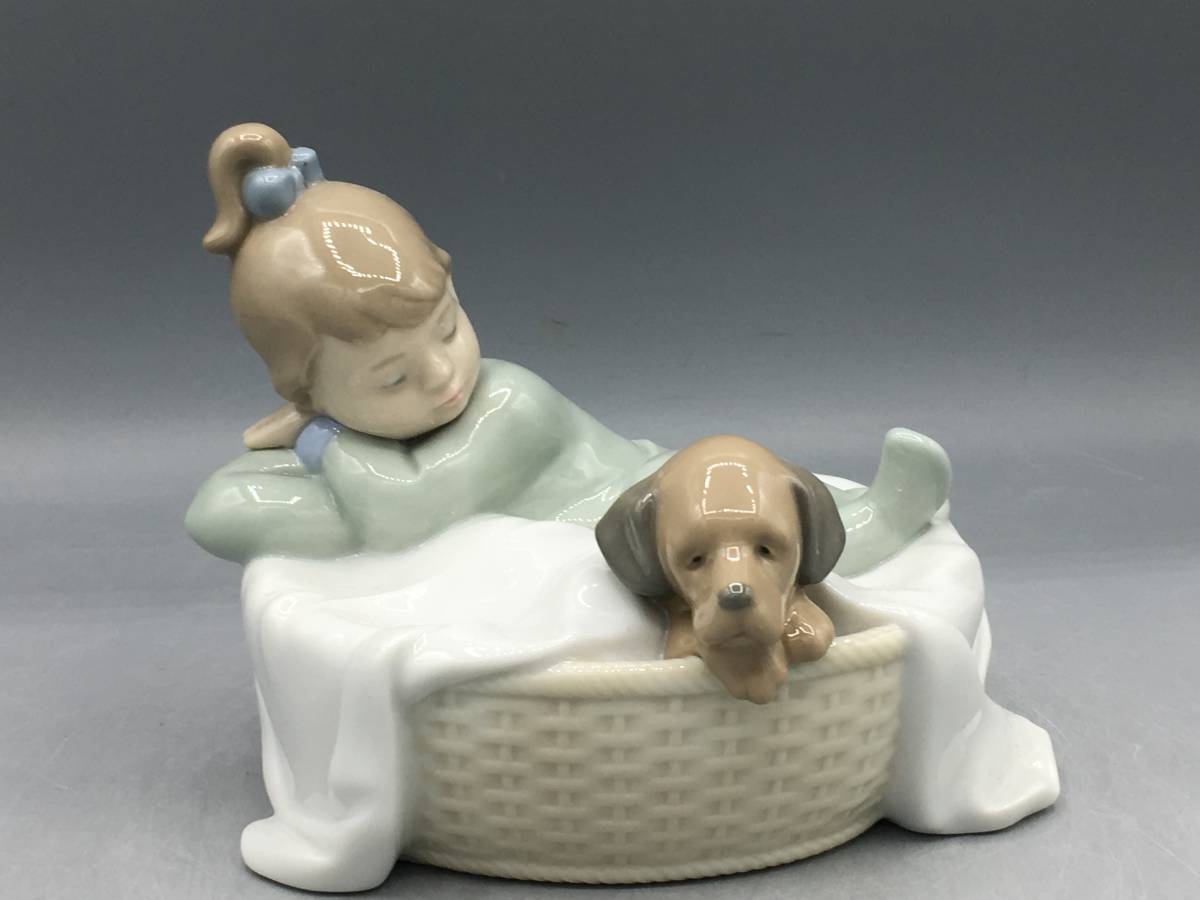 - リヤドロ ナオ 女の子 犬 置物 フィギュリン 陶器 陶器人形 1416