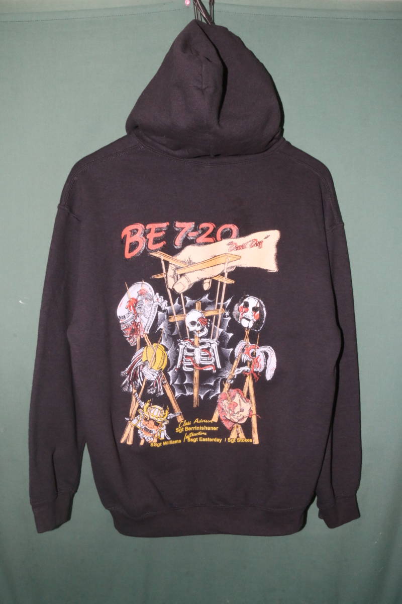 - 米軍放出品 BE-7 ミリタリー プリント パーカー GILDAN ブラック Mサイズ 中古