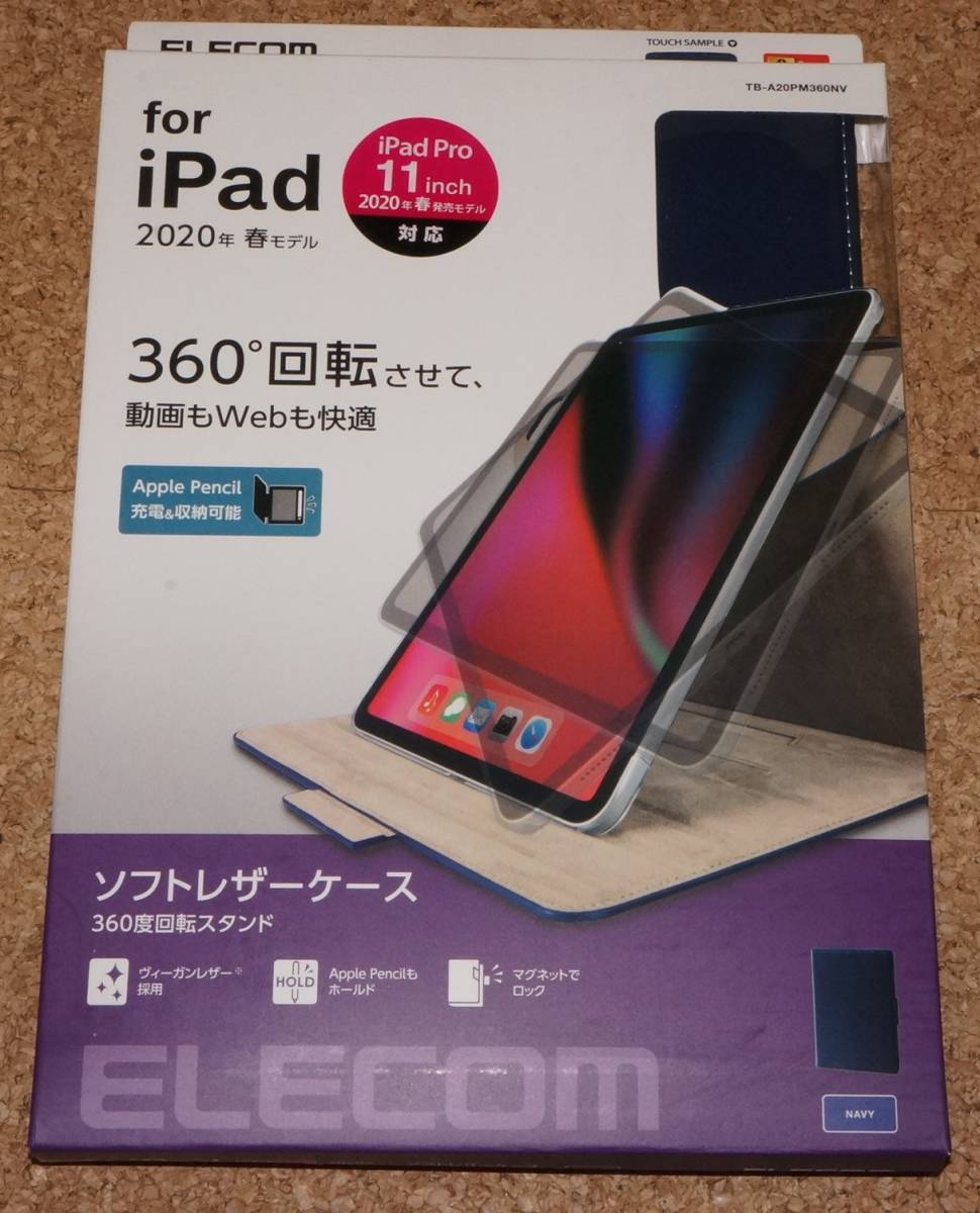 > ★新品★ELECOM iPad Pro 11インチ(2020/2021) ソフトレザーケース 360度回転スタンド ヴィーガンレザー ネイビー