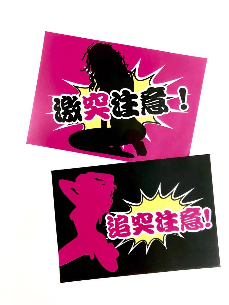 - 新品★送料無料!追突注意 激突注意 防犯ラブステッカー2枚セットドラレコセキュリティデコトラ イタ車