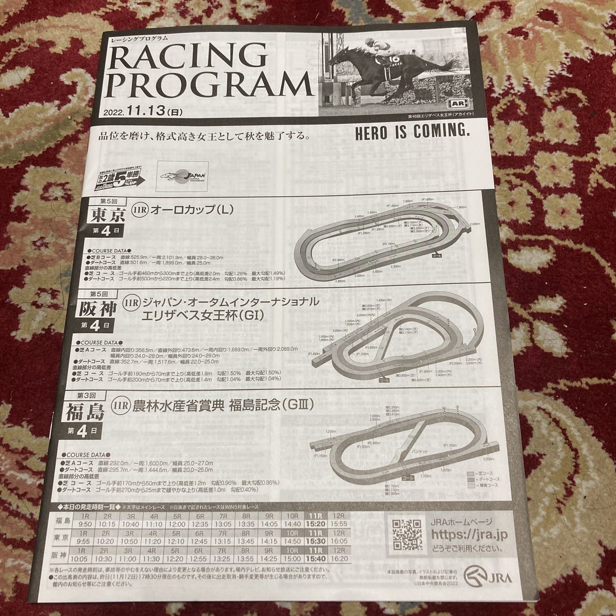 - JRAレーシングプログラム2022.11.13(日)エリザベス女王杯(G I)、福島記念(GⅢ)、オーロカップ(L)