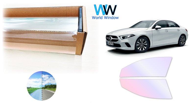 > 遮熱 オーロラ(グロウゴースト91) メルセデス Aクラス セダン (V177) カット済みフィルム フロントドアセット