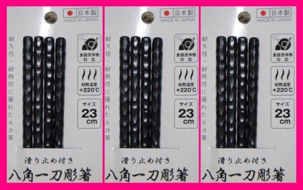 > 【送料無料 八角箸 6膳】 ★持ちやすい 八角 箸 日本製 食洗機・洗浄機・乾燥機対応 23cm 耐熱 樹脂★一刀彫 滑り止め付き C はし