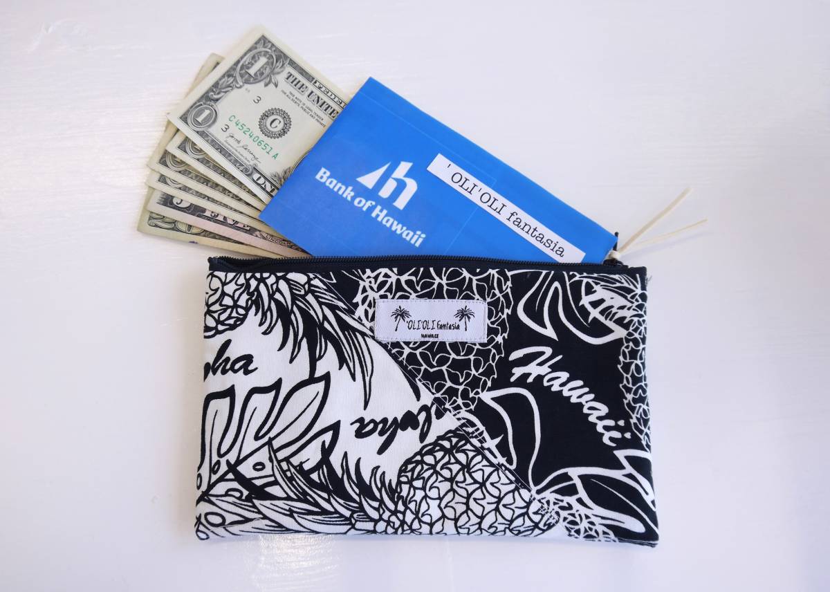 > ★ハワイアン雑貨★6冊収納!ハワイアン柄 ふわふわ通帳 ケース/通帳ポーチ/ハンドメイド/フラガール<モノクロ パイナップル 4>