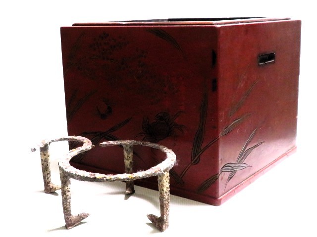 - 火鉢 五徳 箱火鉢 峰谷刻 彫刻細工 蟹 手あぶり