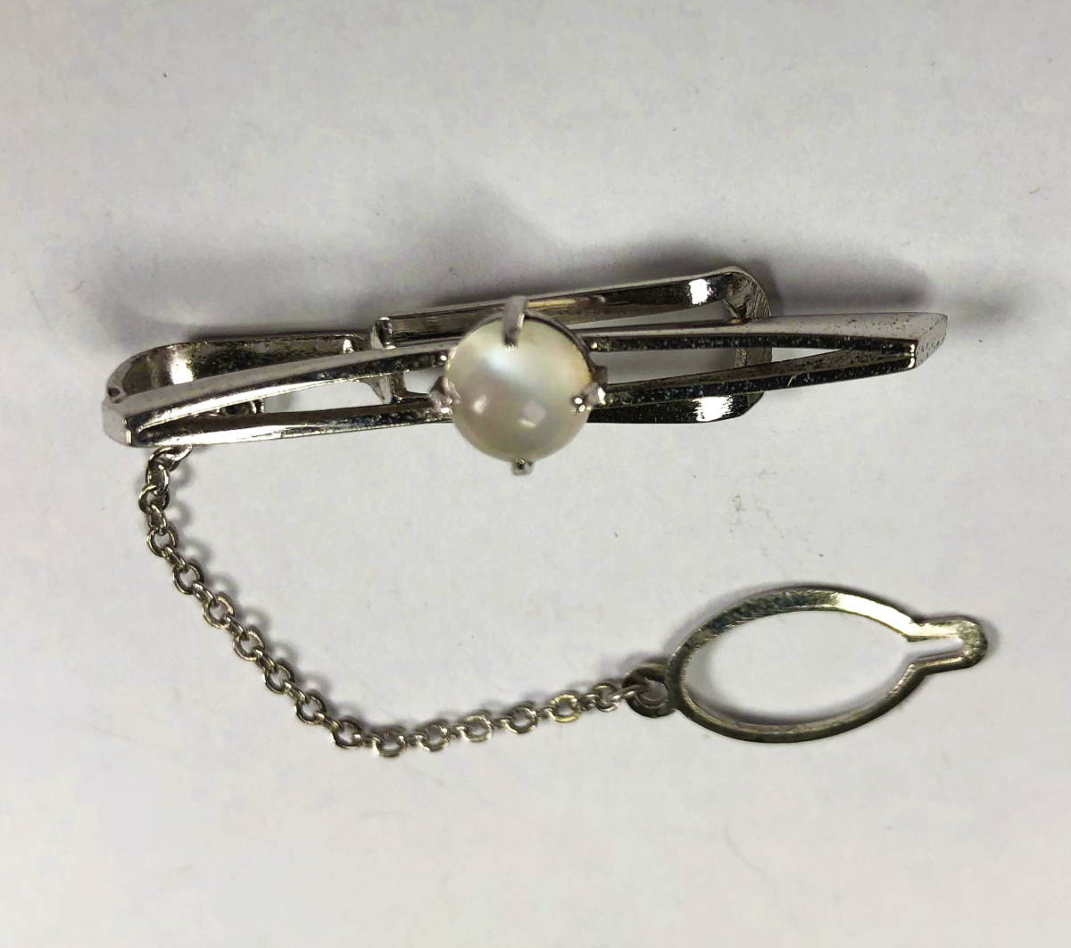- ムーンストーン タイピン シルバー 刻印あり - vo16-37