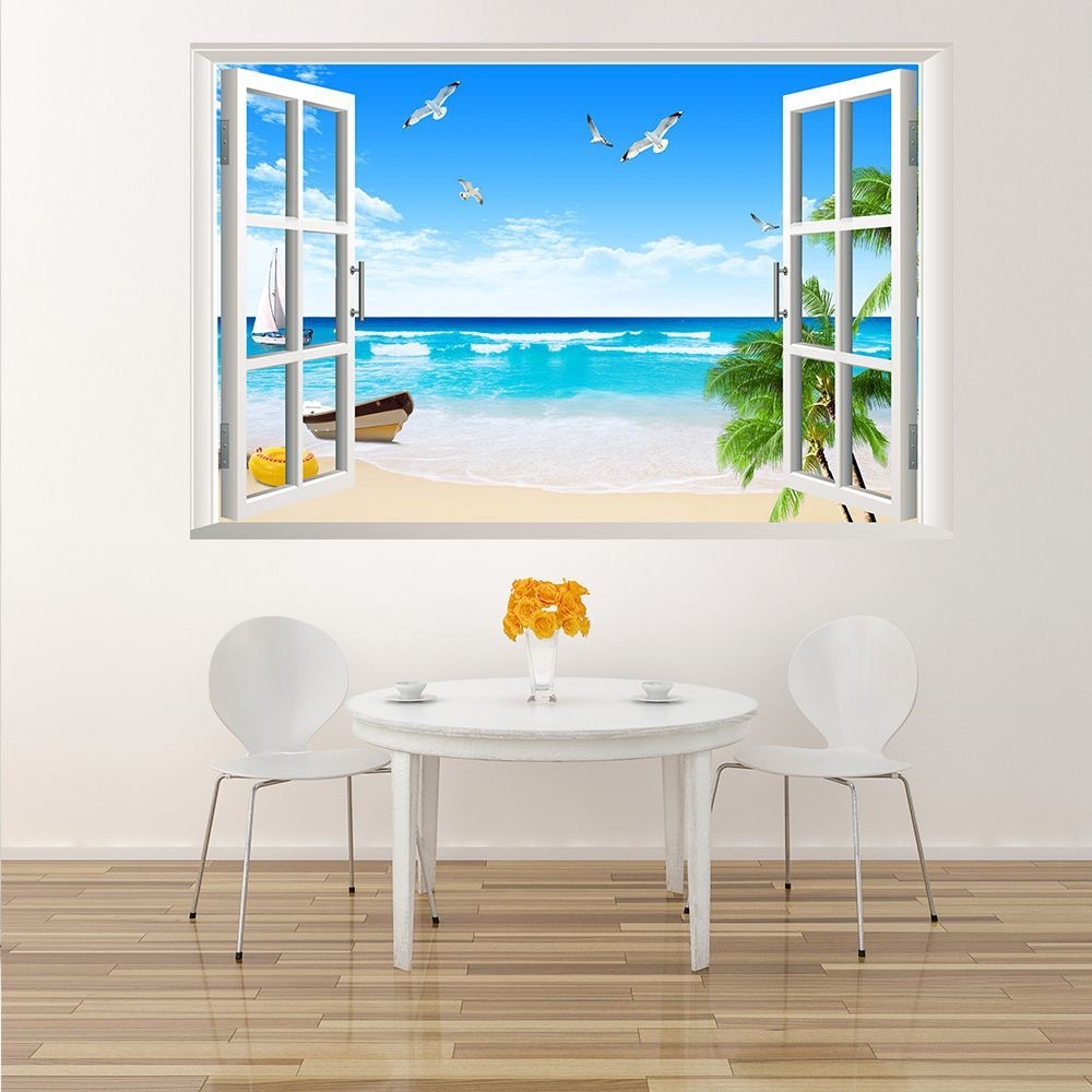 - ウォールステッカー YFC024 3D窓 海 カモメ 船 癒す DIY 壁紙 インテリアシート 剥がせるシール 送料無料