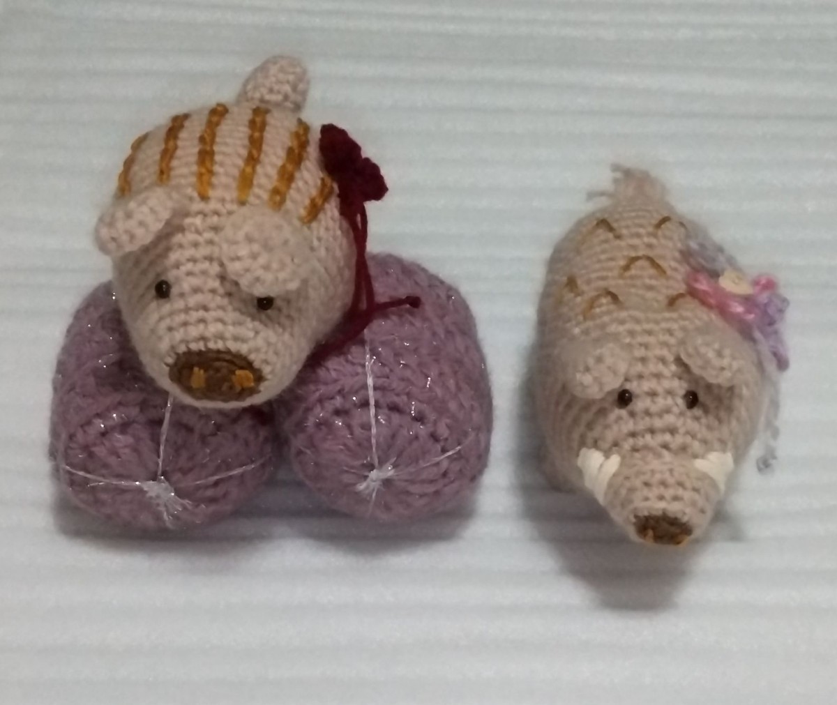 > 謎の物体×2☆いのしし?らしきもの猪イノシシ置き物インテリア小物 出処正体不明ふわふわフワフワ可愛らしい小さい手のひらサイズ手作り?