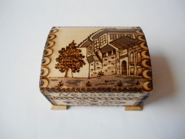 - ブルガリア ハンドメイド 絵付け ピログラフィア 木箱 小 ネセバル 043-1 (6.3×8.3)