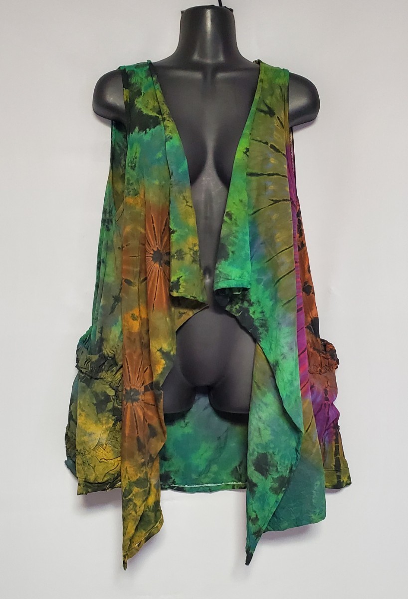 - お得 新古品 未使用 DECORER ムラ染め デザインジレ レディース ジレ ベスト 藍染 絞り染め