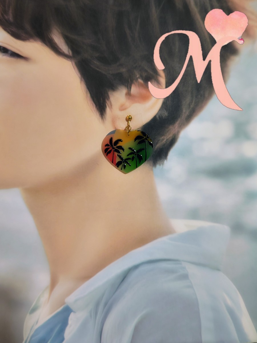 - ハンドメイド イヤリング or アレルギー対応 ピアス アクリル 製 とっても 軽い 夏 ハート