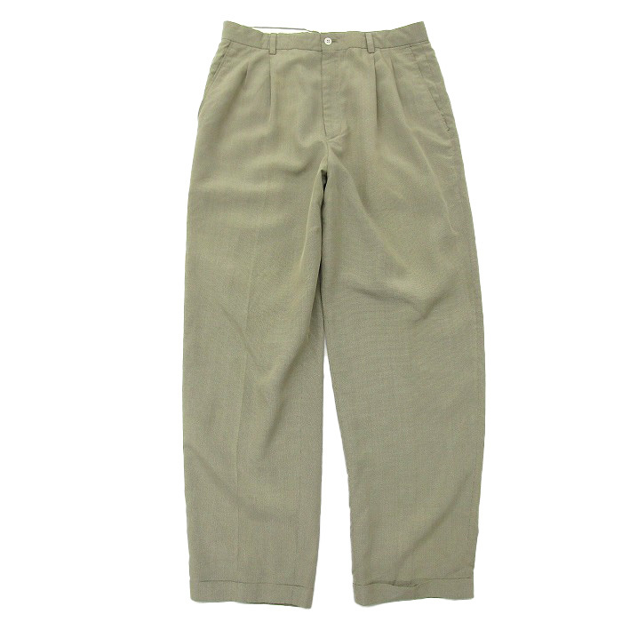 - 古着 スラックス パンツ ツータック 千鳥格子 ベージュ サイズ表記:W34L32 gd76475