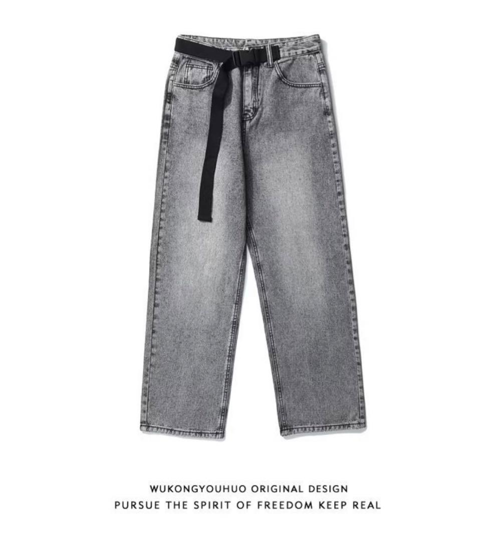 - イージー ストレート デニム ジーンズ L ダークグレー ユニセックス 新品