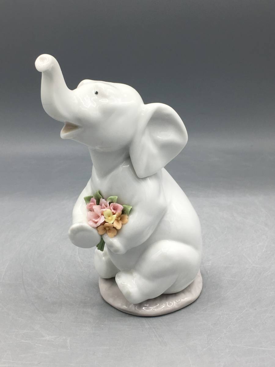- 希少 絶版 リヤドロ 象 花 置物 フィギュリン 陶器 陶器人形 6462 花を持つ白い小象 レア